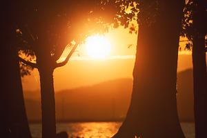 Overpowering orange glow of the setting sun over Lake Guntersville